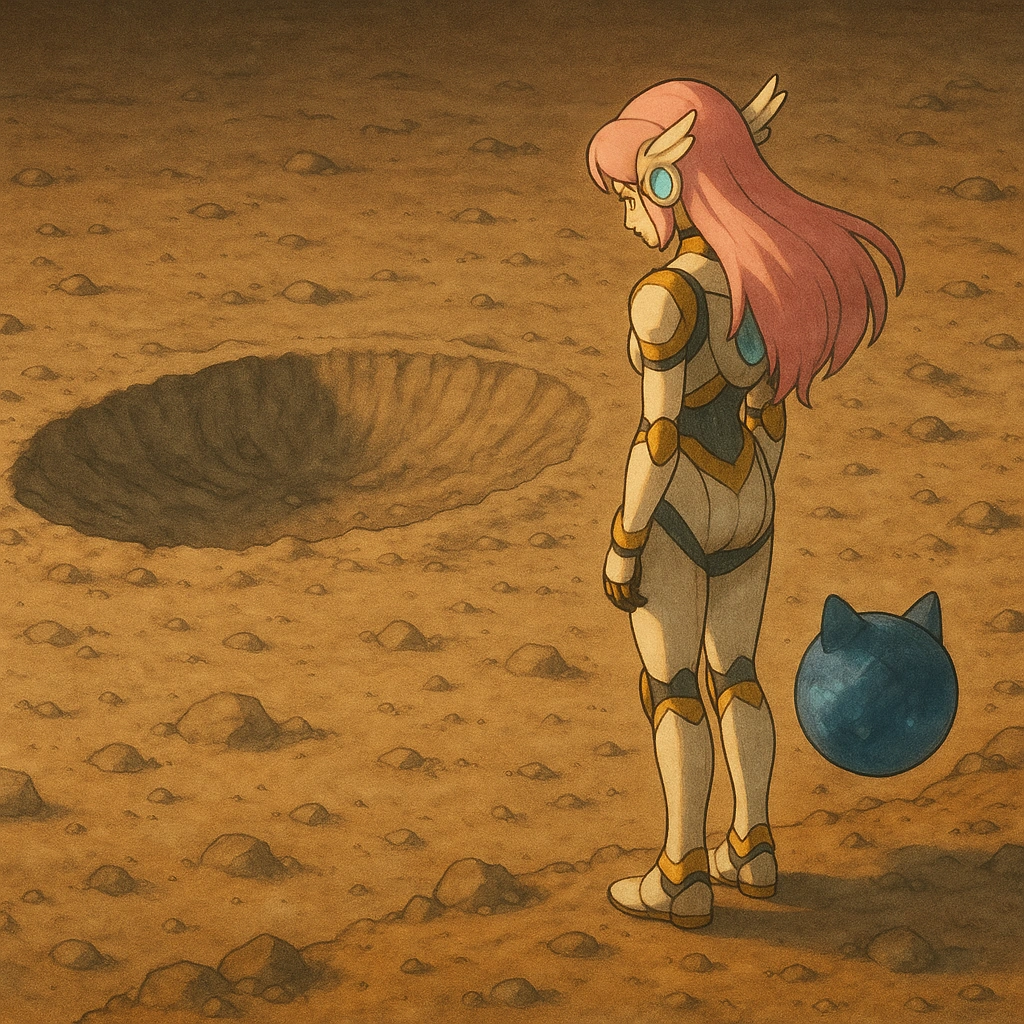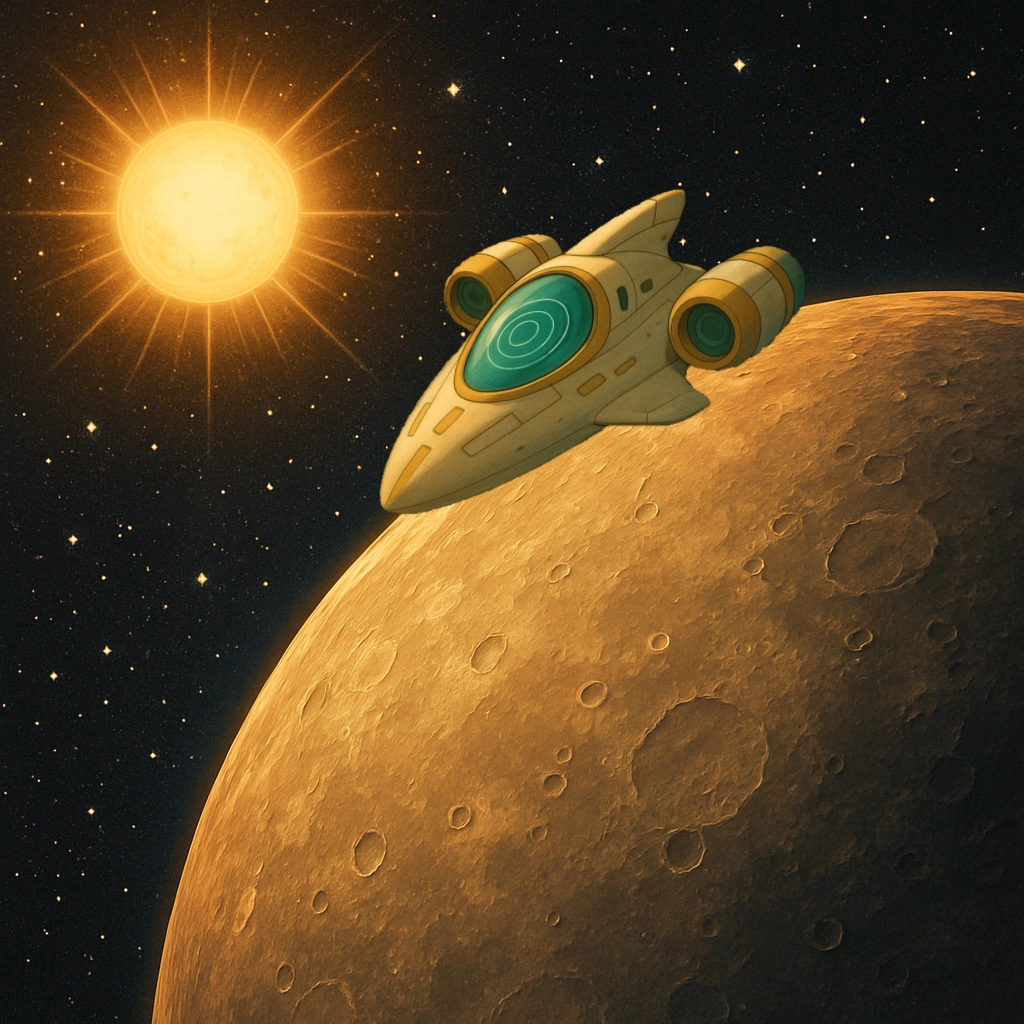 Andi-roid headed to Mercury on the Nebulon Voyager. She first traced the final orbit of NASA's Messenger probe. She then later landed near its impact site and paid her respects.
